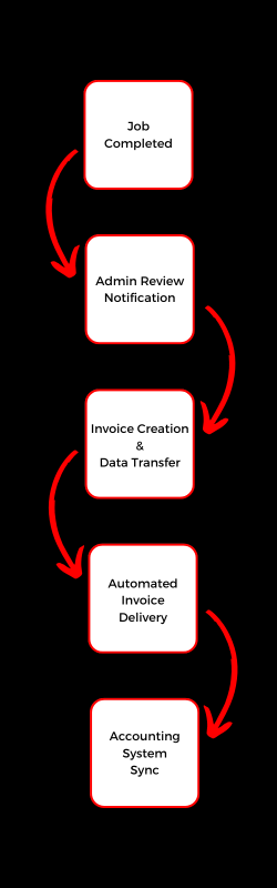- Action: The system sends an internal alert (via Slack, Email, etc.) to the designated office manager or accounting team with a direct link to the completed job record.